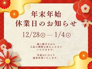 年末年始休業のお知らせ